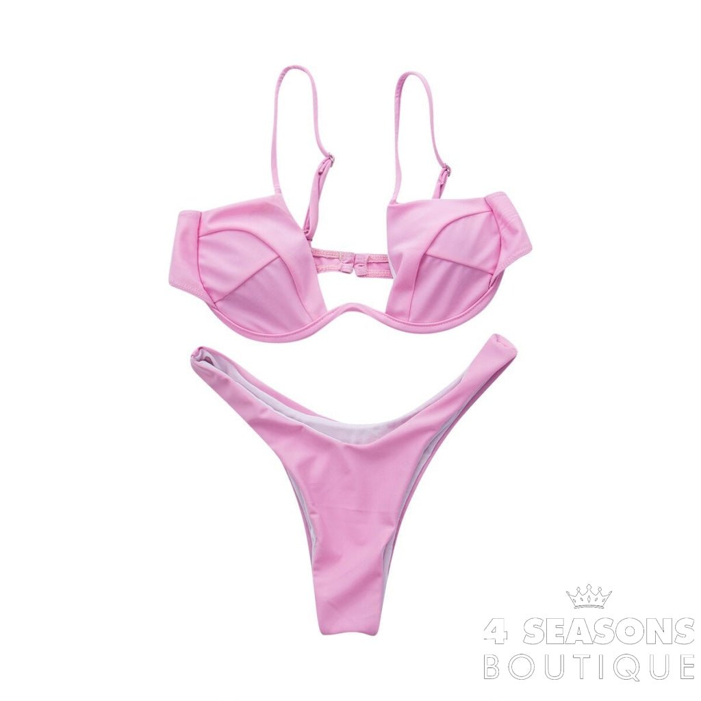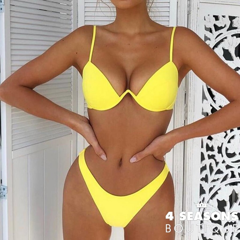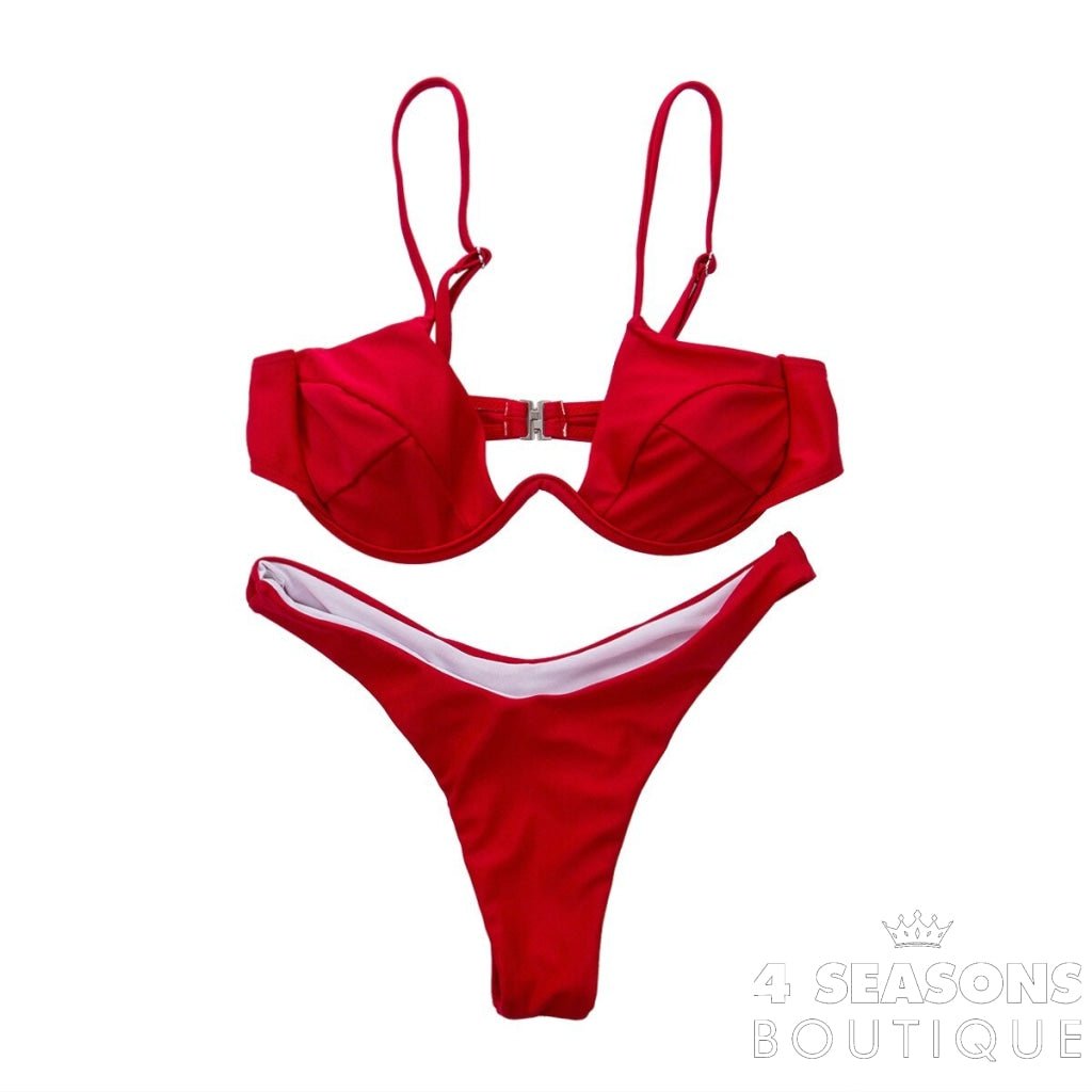 Bikini available in red, yellow, black, pink, blue and white.