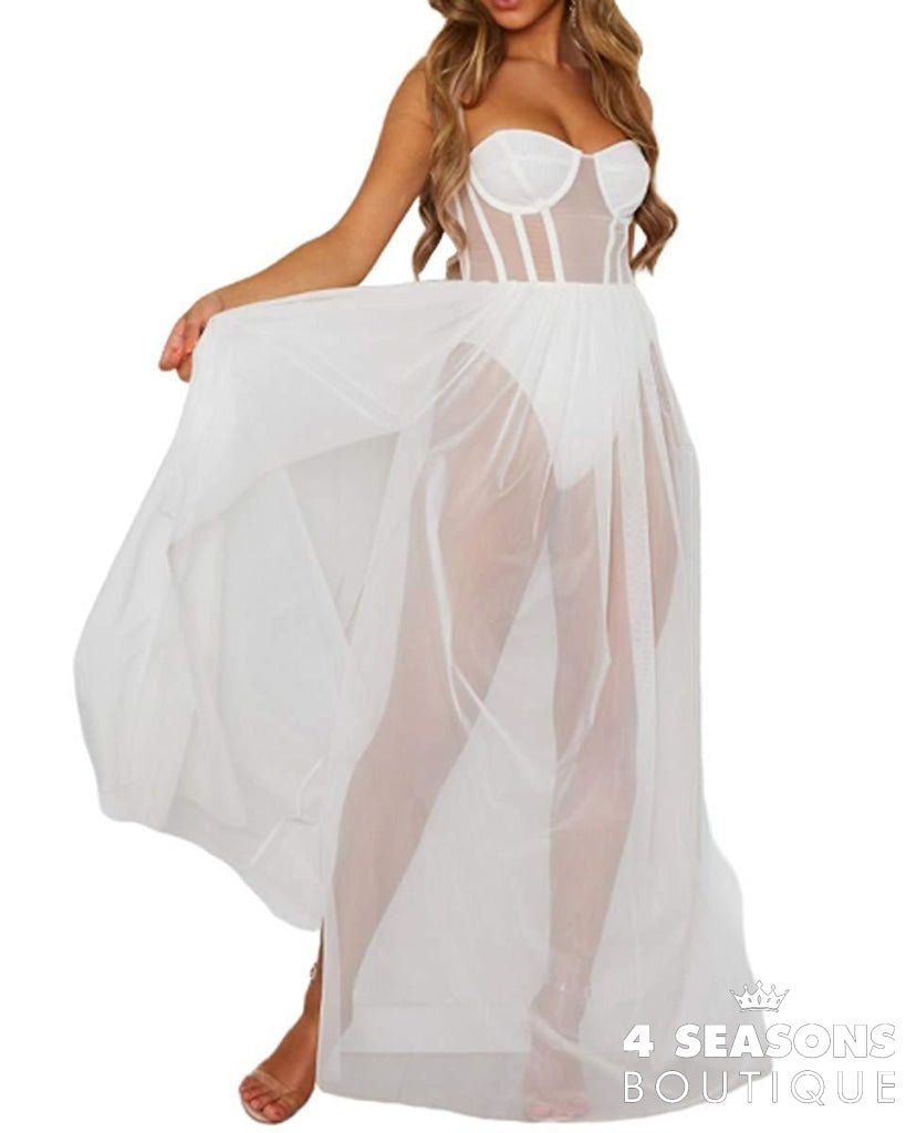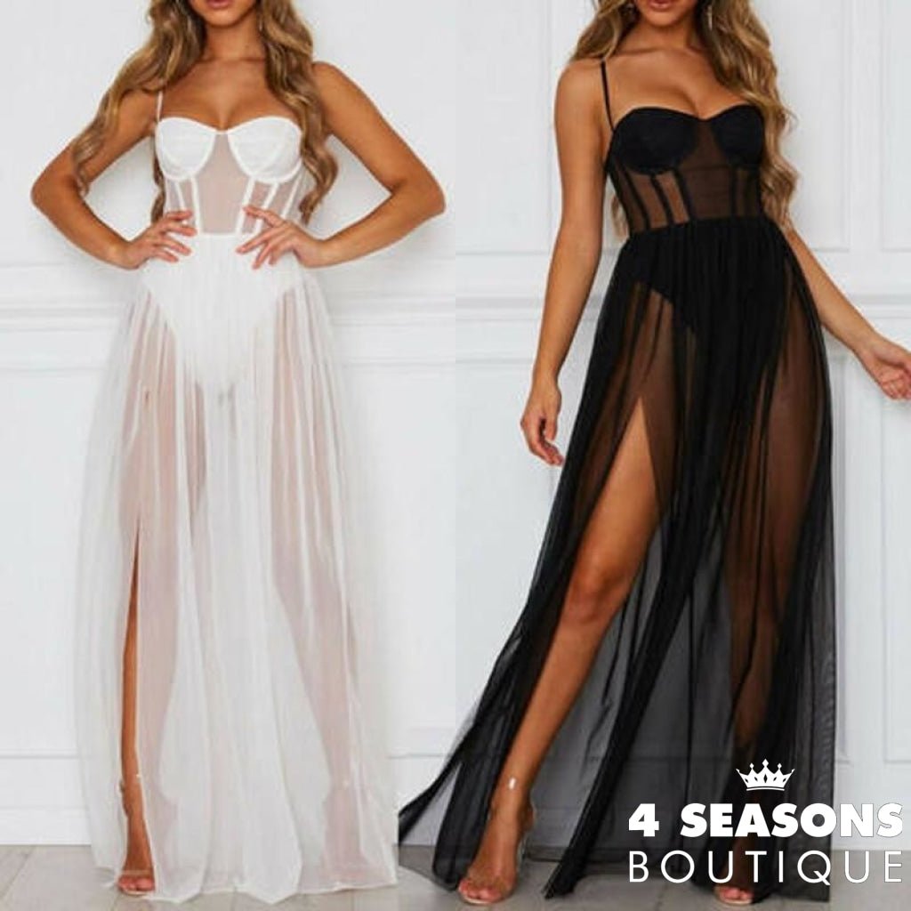 Beach cover-up available in white and black.